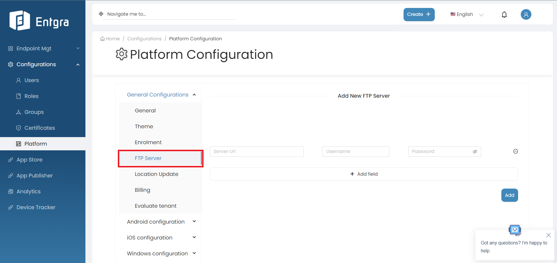 Sign in to the Entgra UEM Server Entgra UEM Console.